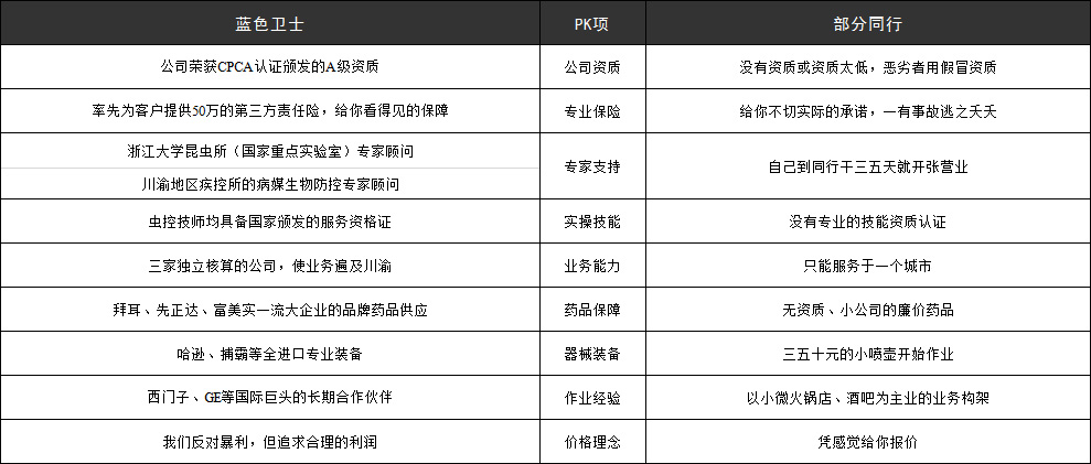 重慶藍(lán)色衛(wèi)士害蟲防治有限公司