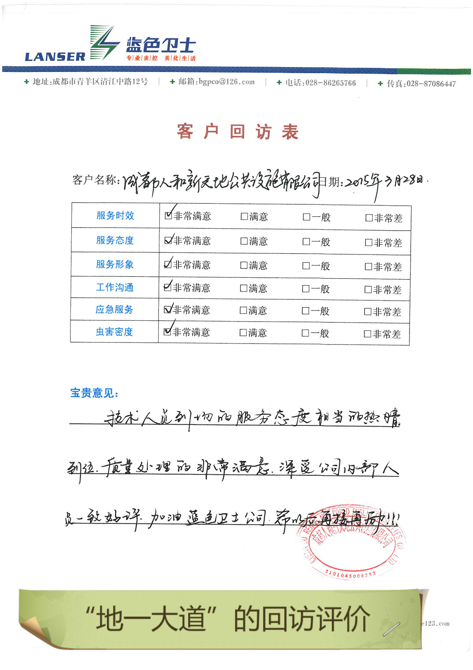 • 地一大道的回訪評(píng)價(jià)