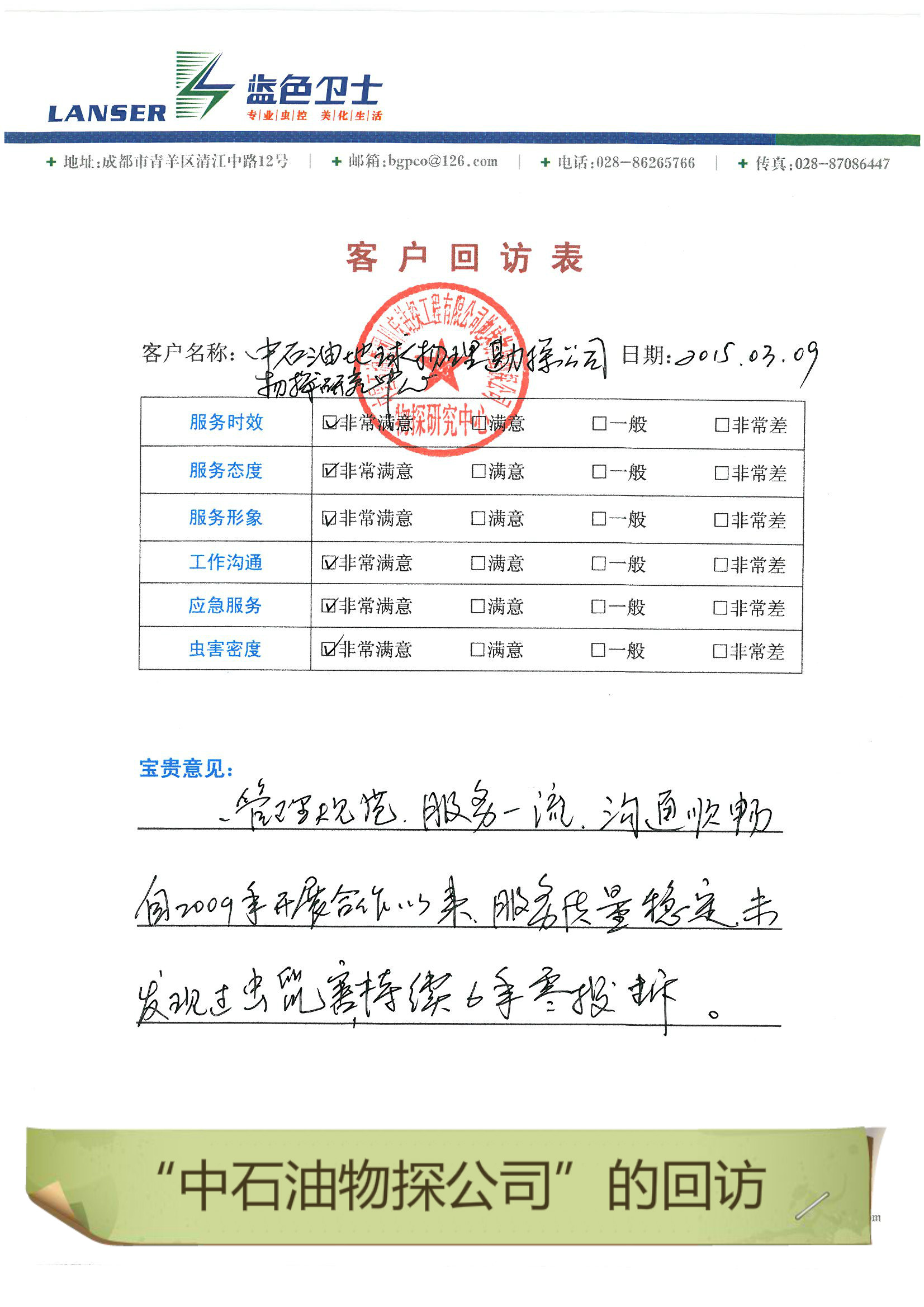 • 中石油物探公司的回訪評(píng)價(jià)
