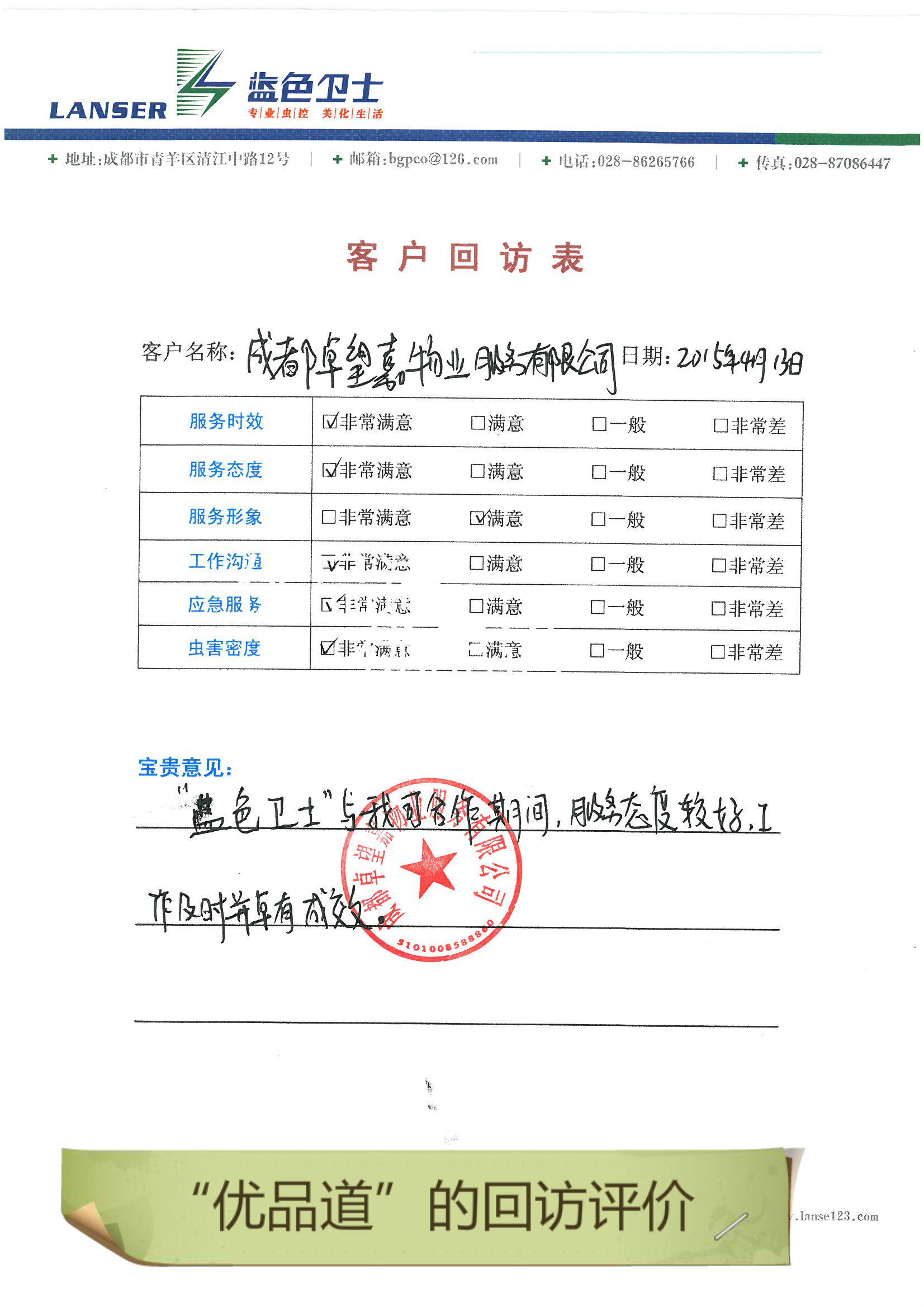 • 優(yōu)品道的回訪評(píng)價(jià)